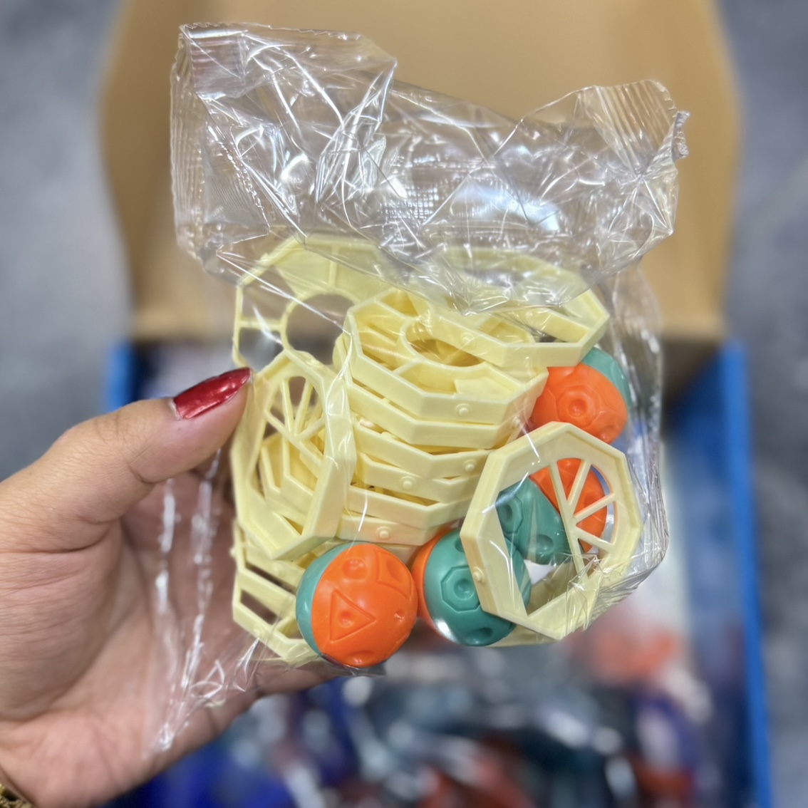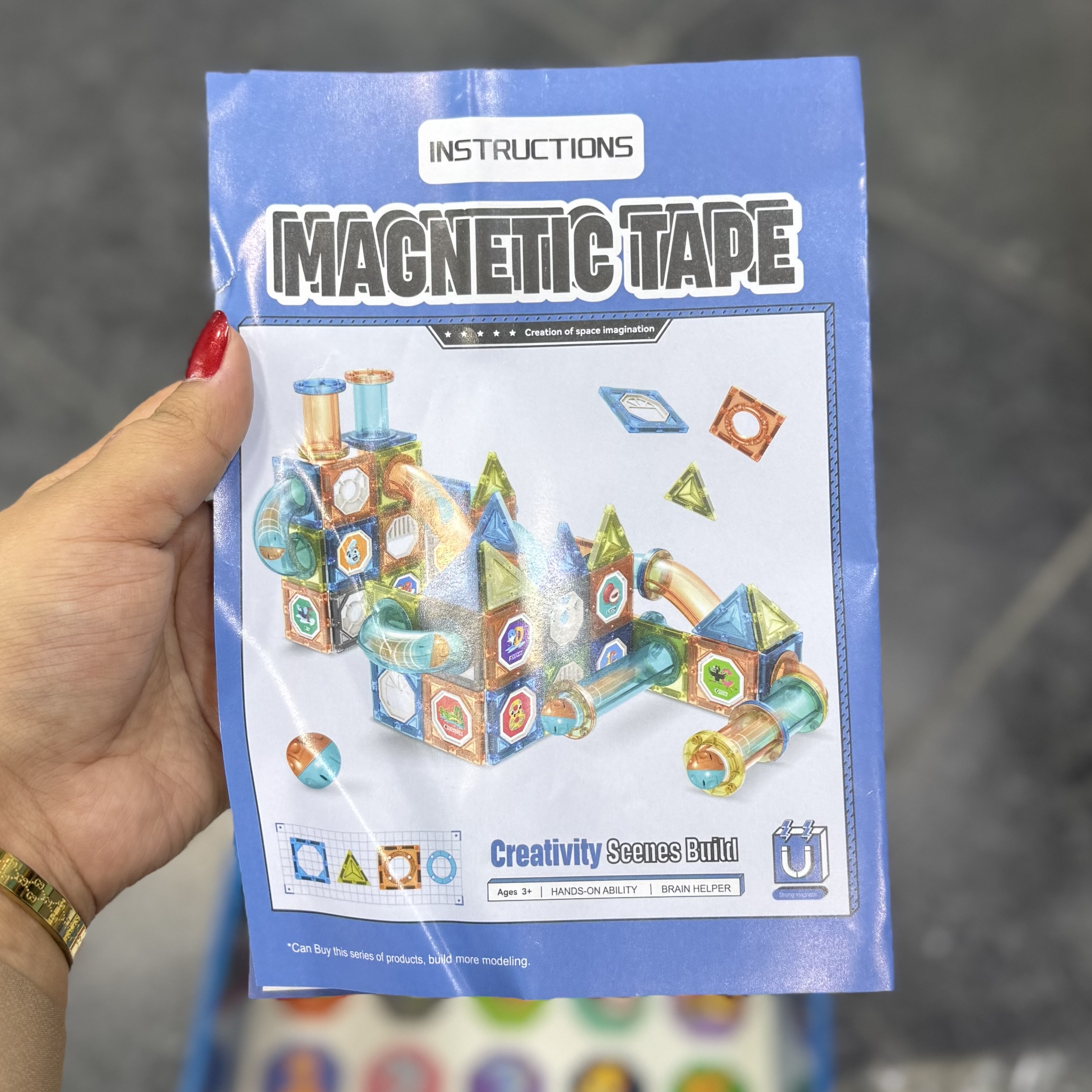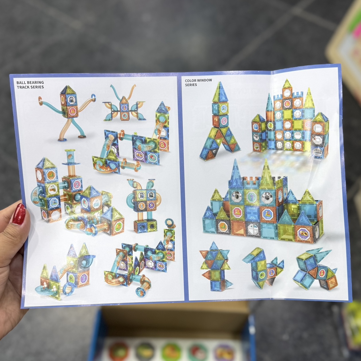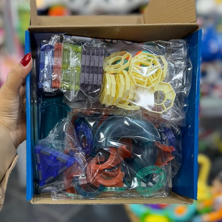 این مجموعه شامل 68 قطعه رنگی مغناطیسی با طراحی شفاف و جذابه که میتونن باهاش انواع سازههای متفاوت، مسیر توپ، قلعه، تونل و برج بسازن.