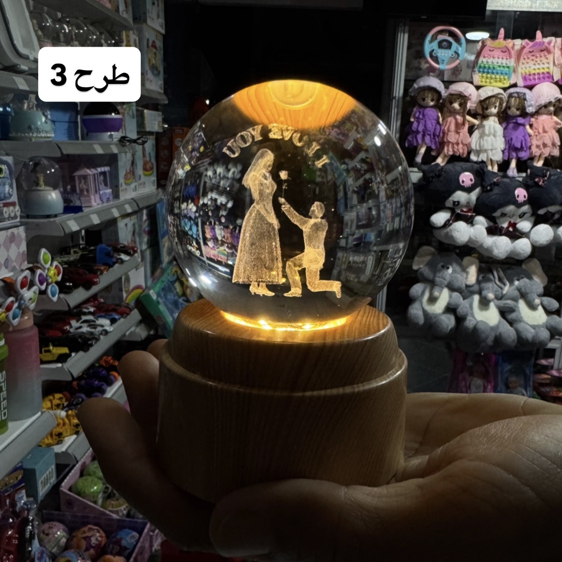 گوی کریستالی چرخان با پایه طرح چوب – ترکیب جذاب نور، حرکت و زیبایی!