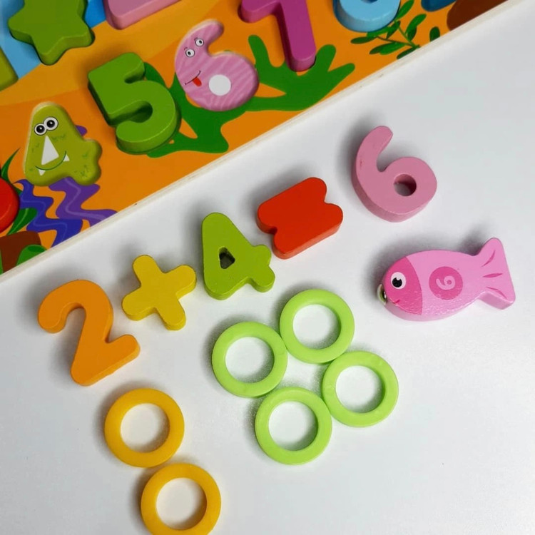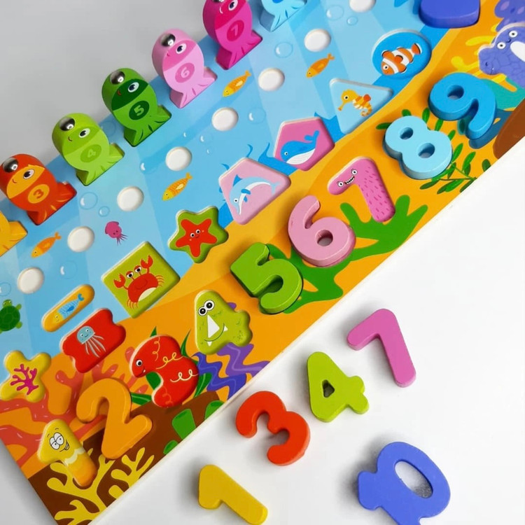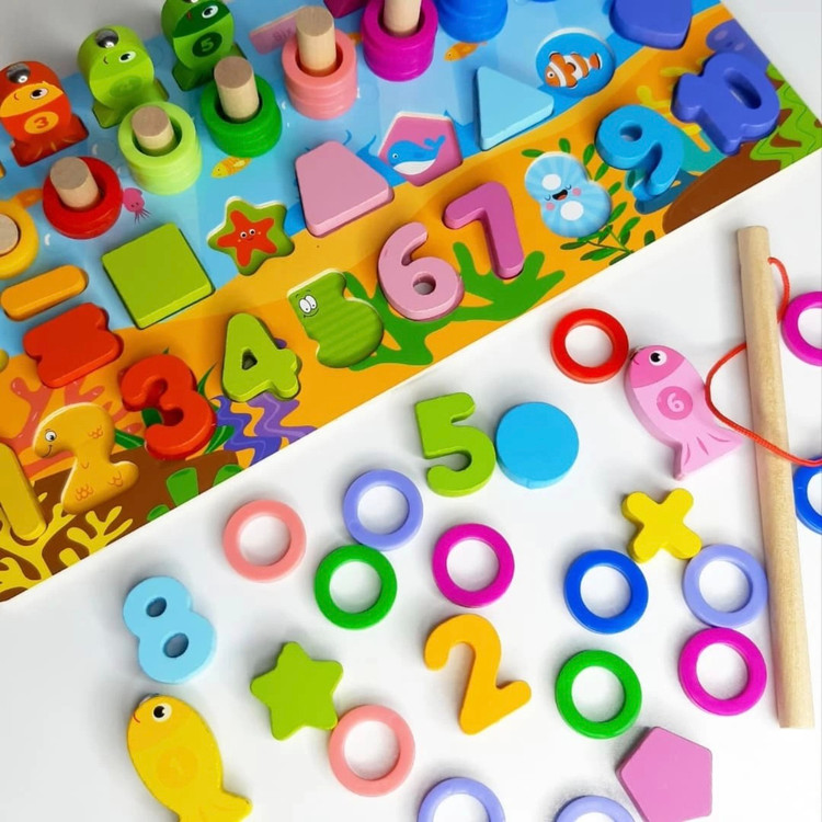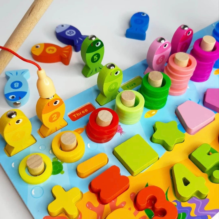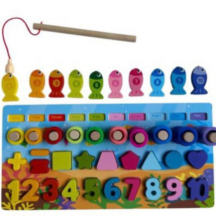 ماهیگیری با قلاب چوبی آهنربایی برای بازی و تطبیق عدد